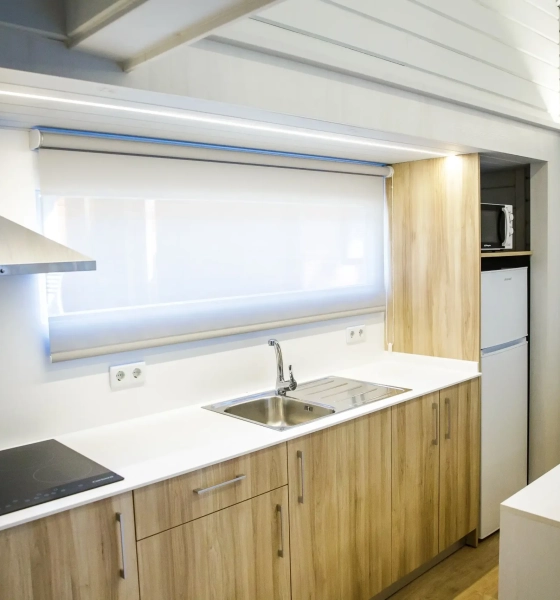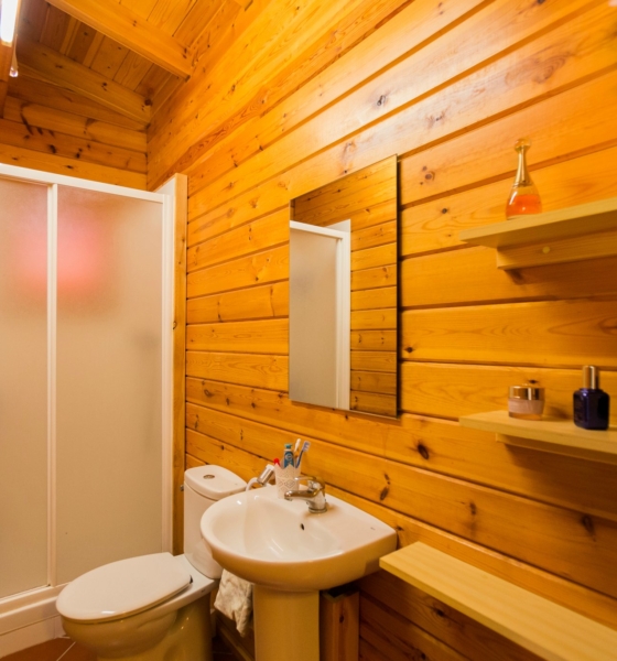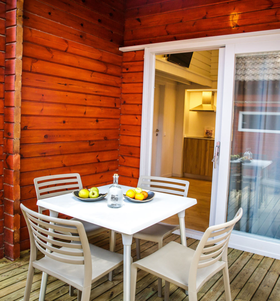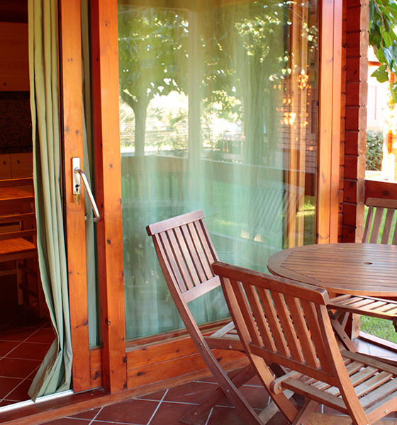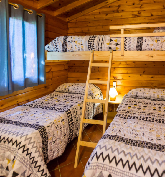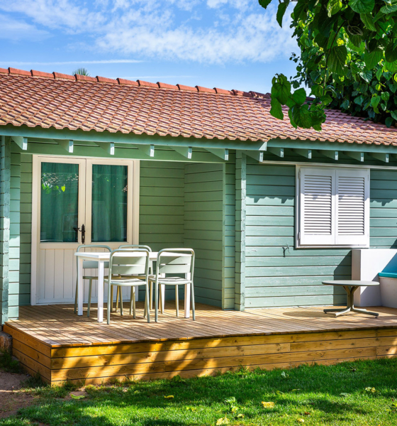 Bungalow de madera con 2 habitaciones independientes ideal para familias.