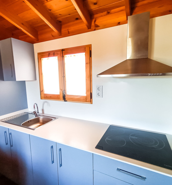 - Cocina equipada con menaje básico, nevera, cafetera de cápsulas Tassimo, batería de cocina, vitroceramica y microoandas.