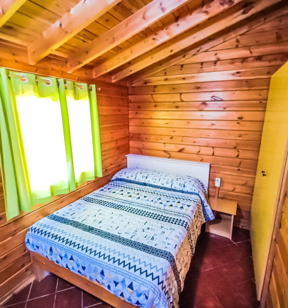 Bungalow de madera con 2 habitaciones independientes, ideal para familias.